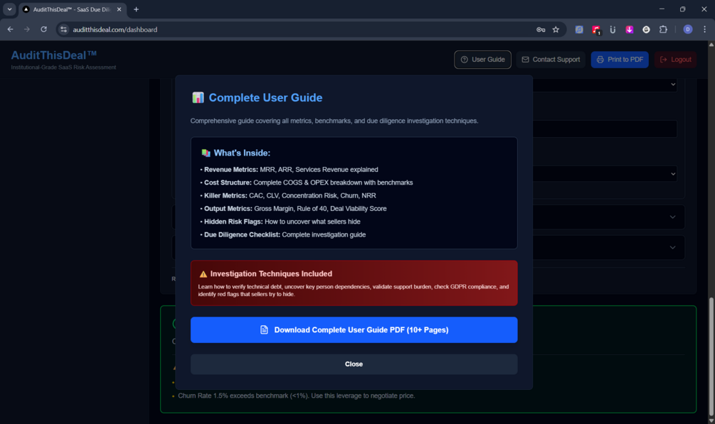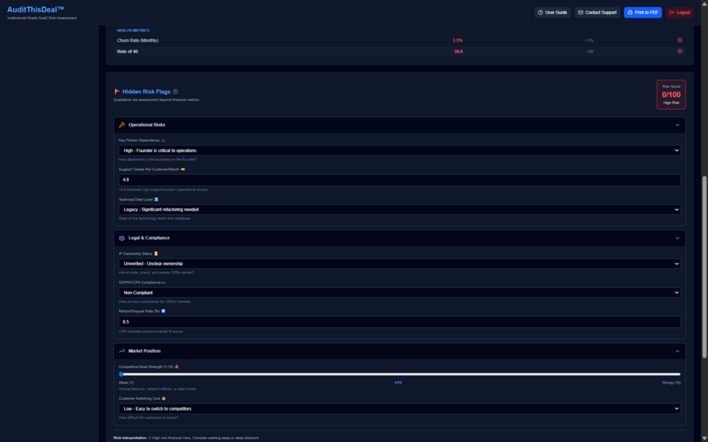 AuditThisDeal™ is a risk assessment tool. It is not financial, legal, or investment advice. Always consult qualified professionals before making acquisition decisions.